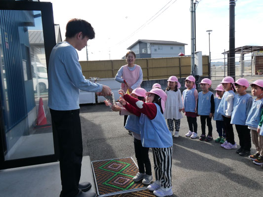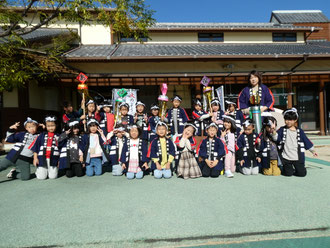 5歳児が幼年消防クラブの一員として、文里地区を防火パレードしてきました。